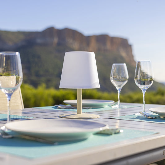 Lampe de table sans fil pied en acier crème LED blanc chaud/blanc dimmable STANDY MINI Cream H25cm
