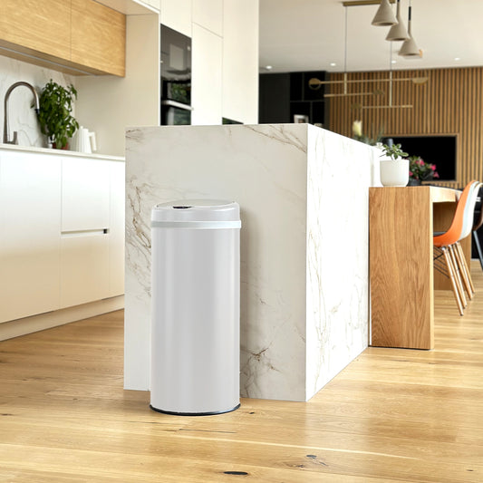 Poubelle de cuisine automatique 42L SOHO Blanc brillant en acier INOX avec cerclage