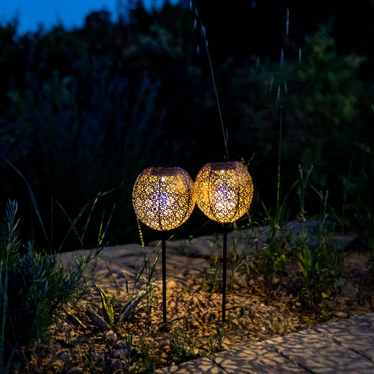 Lot de 2 balises solaires style oriental à planter LED blanc chaud AGADIR H45cm