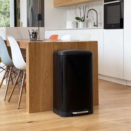 Poubelle de cuisine à pédale 40L Design GREENWICH Noir mat en acier Inox avec seau couvercle bombé