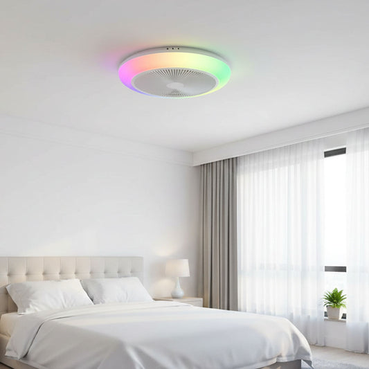 Ventilateur de Plafond Compact LAGUNA 46cm avec Éclairage LED RGB Multicolore 24W Puissant Petit Ventilateur Silencieux 40dB pour Chambre Enfant et Bureau Moteur DC 10W Basse Consommation Sécurité Maximale avec Télécommande Plafonnier 3500 Lumens Blanc