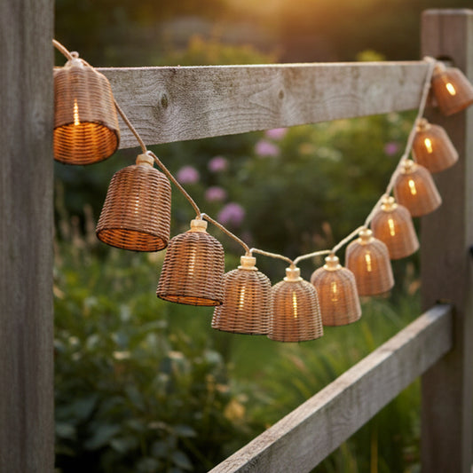 Guirlande lumineuse extérieure raccordable 6m avec 7 ampoules LED filament E27 blanc chaud FRUFRU LIGHT Abat-jour en jute bohème