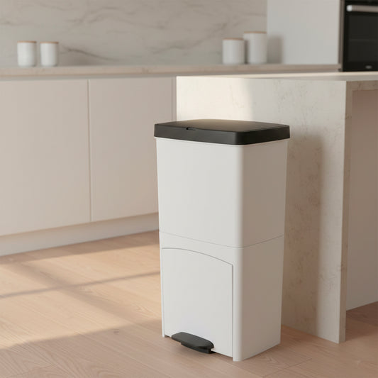 Poubelle de cuisine tri sélectif verticale 70 litres PICEA Blanc double compartiment