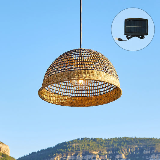 Suspension solaire DARMA SOLAR en rotin naturel avec câble hybride secteur et solaire 5m de longueur