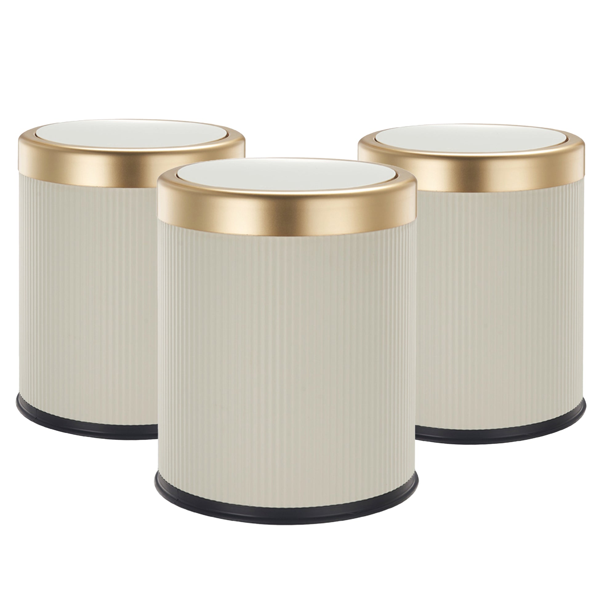 Lot de 3 Poubelles Push en Plastique 8L GLINT Blanc et Or