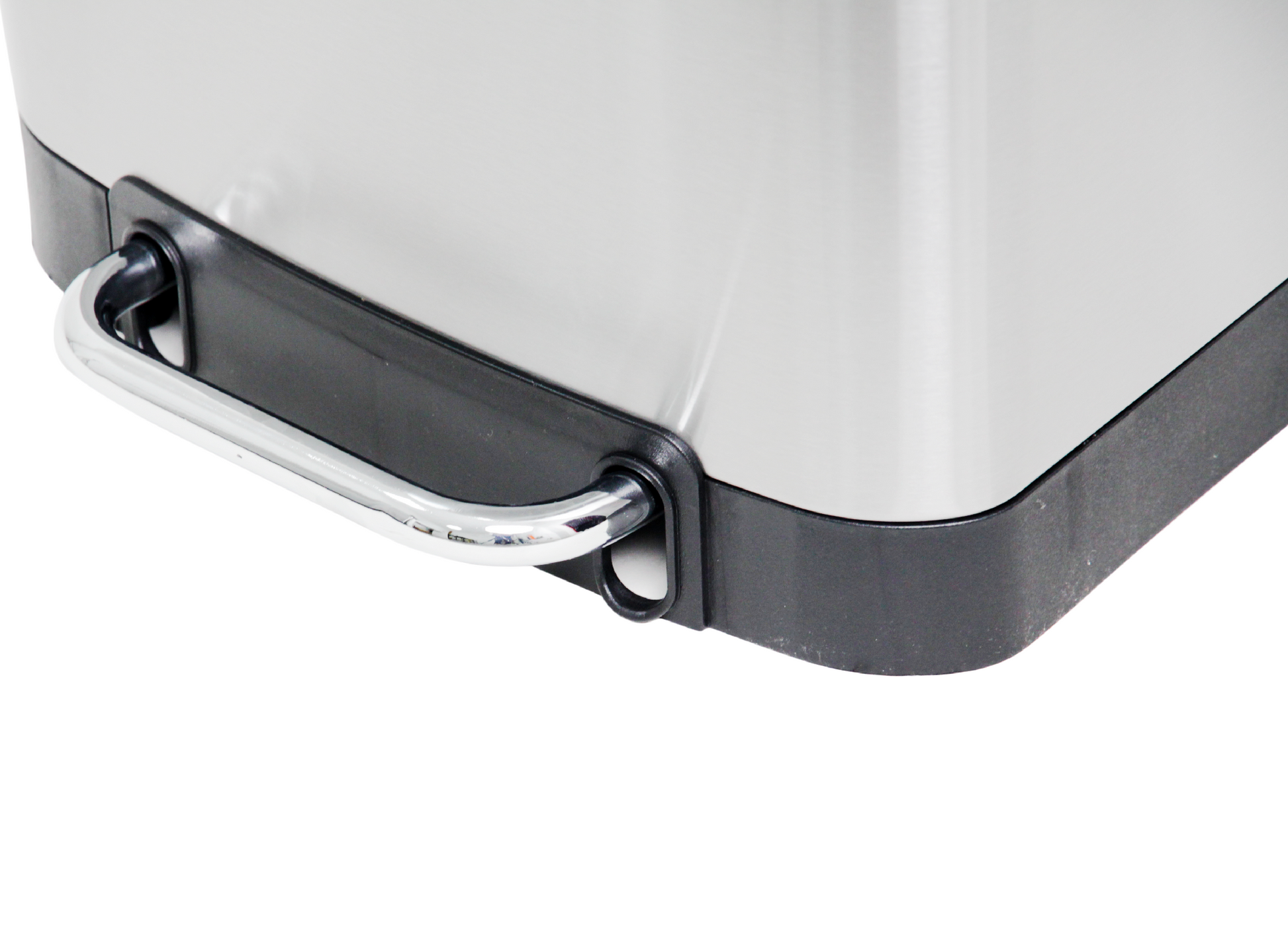 - Poubelle avec pédale au pied manuelle. Matériaux robustes. Mécanisme de pédale solide. Très simple d'utilisation. Fermeture insonore et anti-odeurs. Silencieuse grâce à son système d'amortisseur et de fermeture ralentie. Ouverture facile grâce à sa large pédale. Qualité professionnelle. Finition haut de gamme. Facile à déplacer grâce à une poignée de transport solide. Facile à nettoyer grâce au seau intérieur en plastique