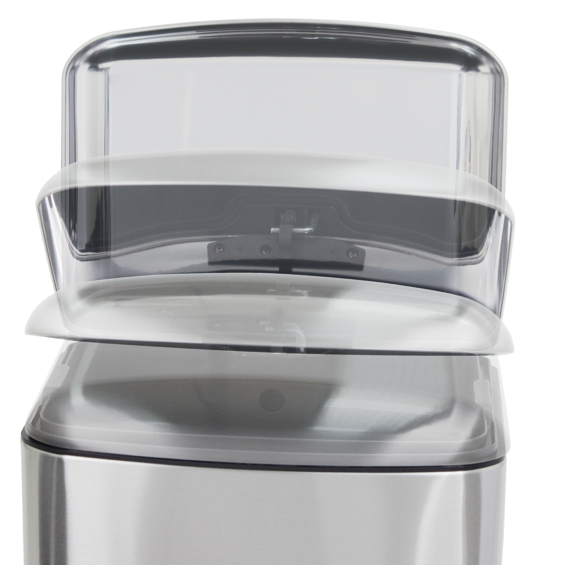 - Plus qu'une poubelle, un meuble design. Il n'est pas utile de se baisser pour jeter ses déchets. Poubelle Stable. Base antidérapante. Fermeture silencieuse et Anti-Traces de Doigts. Cette poubelle a tout pour plaire. Nul besoin de la cacher dans un coin : faites-en un élément à part entière de votre déco. Idéal pour la cuisine, la salle de bain, le bureau, la chambre, la buanderie et tout autre endroit de passage où vous avez besoin d’une poubelle. Look moderne et élégant.