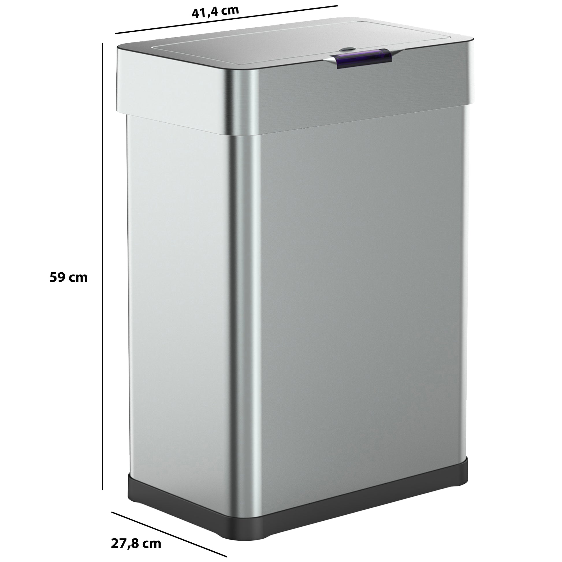- Poubelle de cuisine automatique rectangulaire avec cerclage Capacité 60L modèle DAYTONA en acier Inoxydable Finition Inox brossé Dimension: 41x26xH56cm Poids:4kg